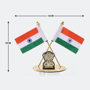 Indian National Flag with Satyamev Jayate Symbol for Office Table, Work Desk
